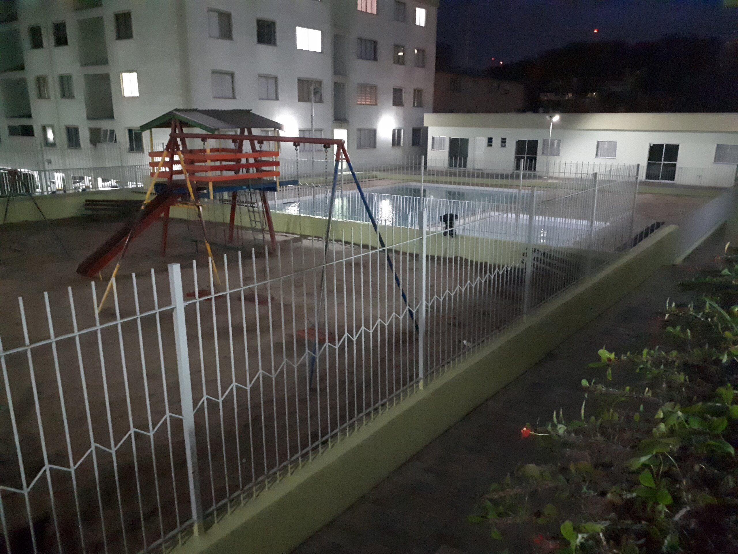O condomínio tem portaria 24 horas, salão de festas com churrasqueira, piscina e bonito paisagismo. A pintura dos blocos foi revitalizada em tons de cinza deixando o condomínio mais moderno.