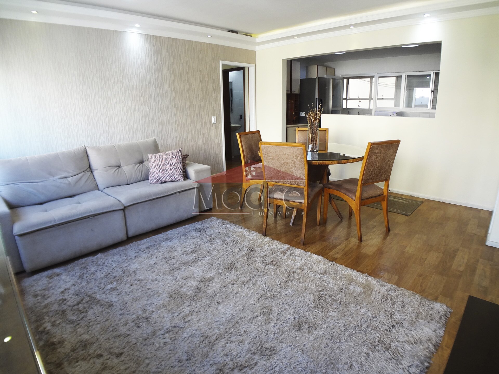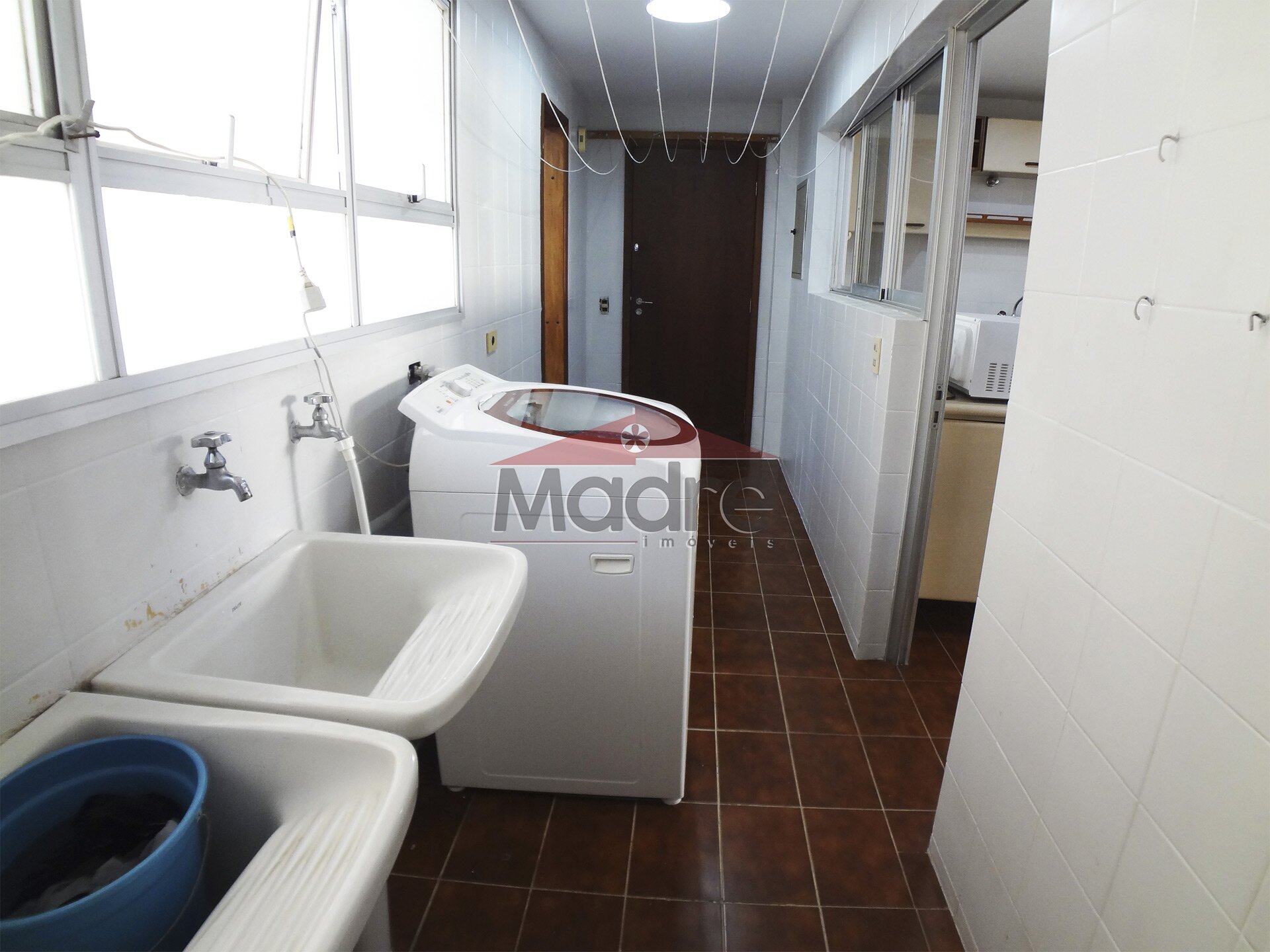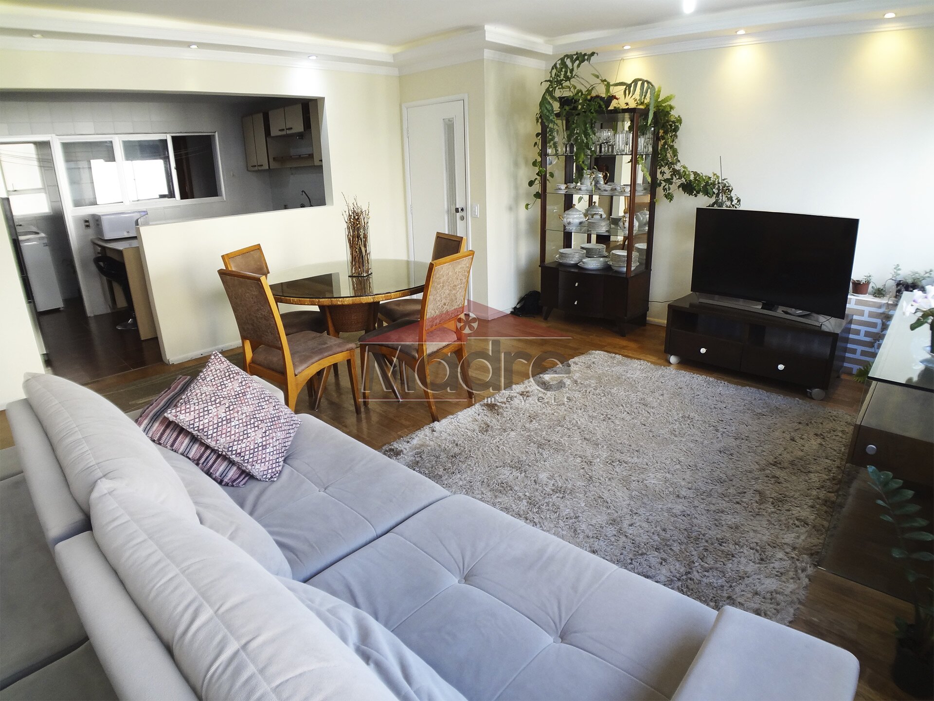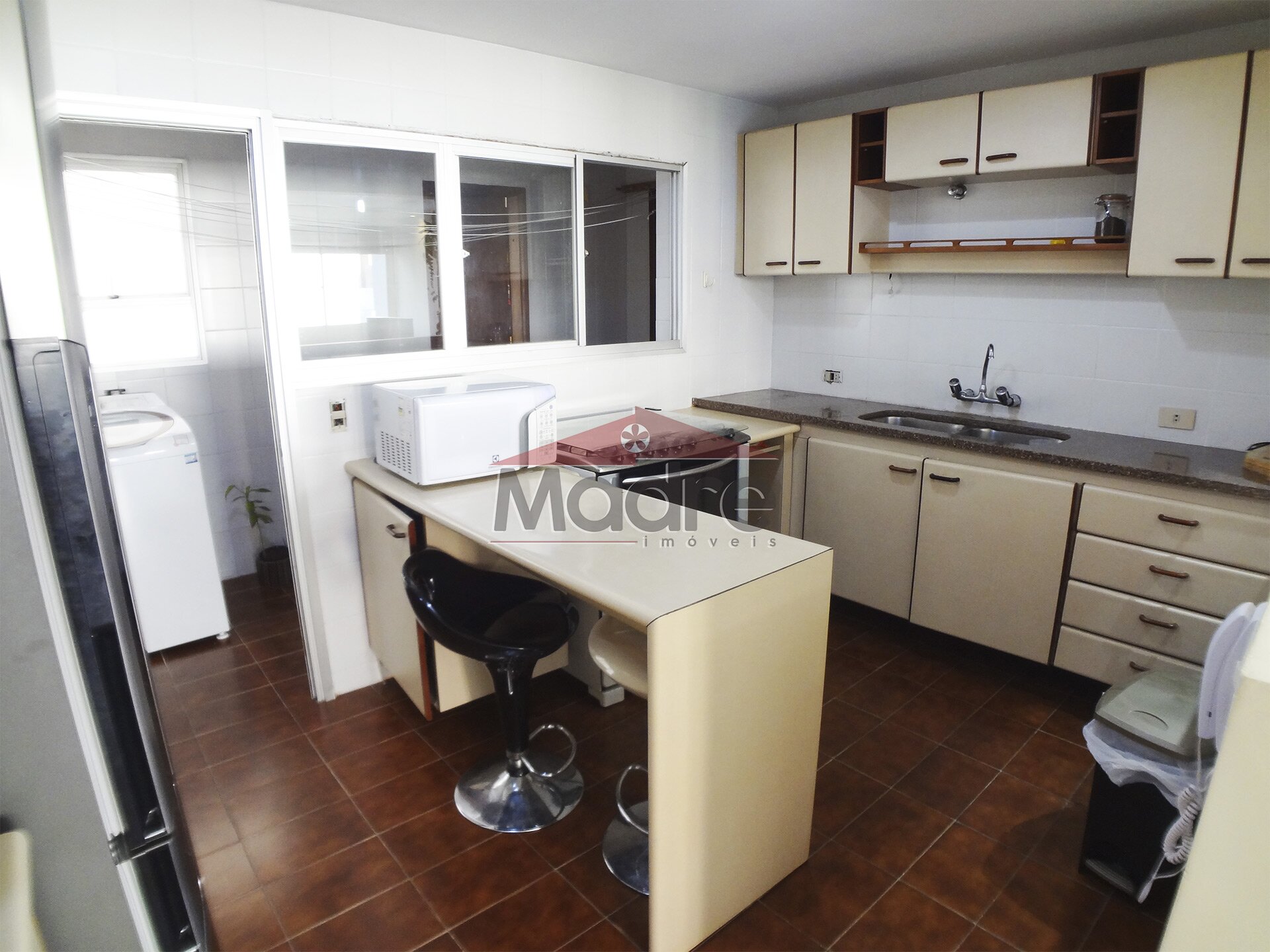 Sala de estar e jantar com cozinha grande e espaço de serviços grande com banheiro e quarto de empregada, pode ampliar tudo isso.