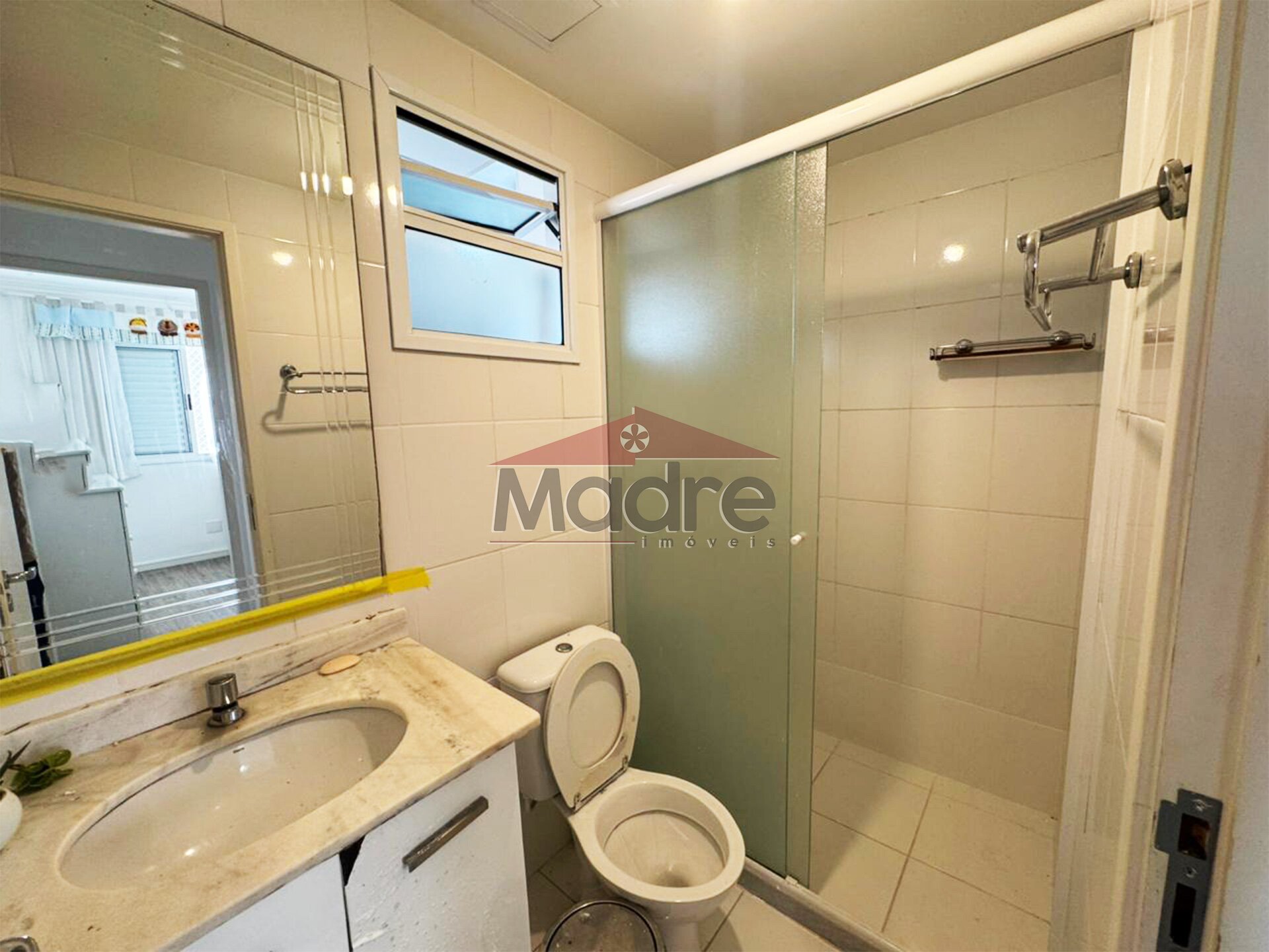 Banheiro social com box e janela,