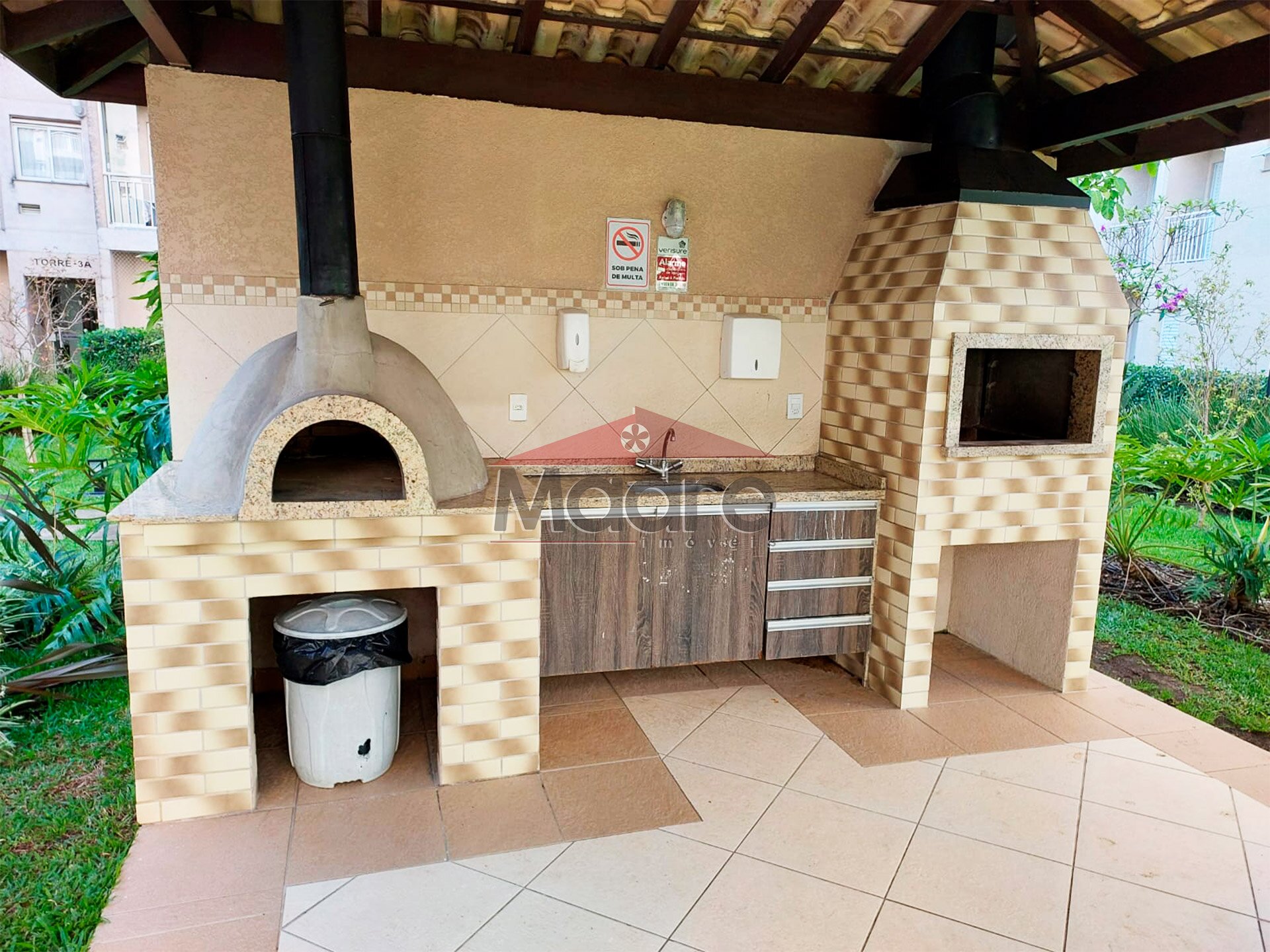 Quiosque com churrasqueira e forno, bicicletários,