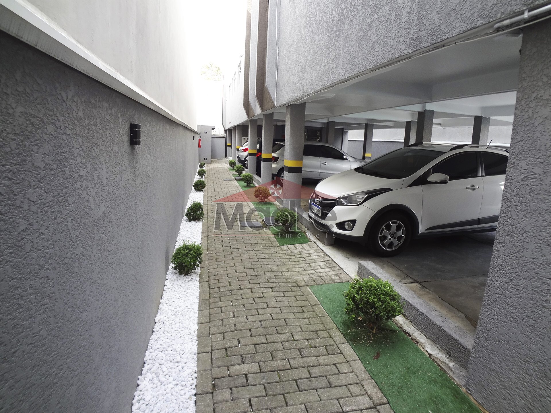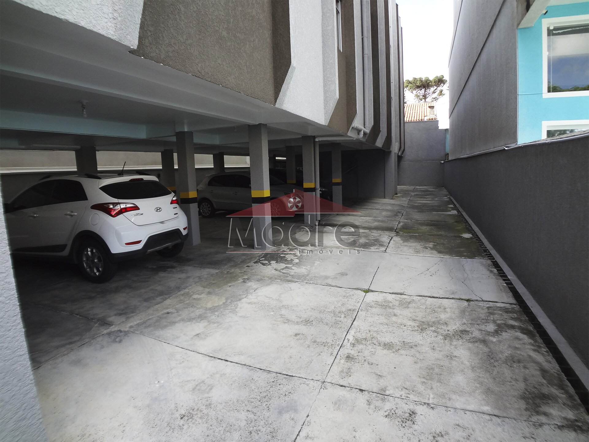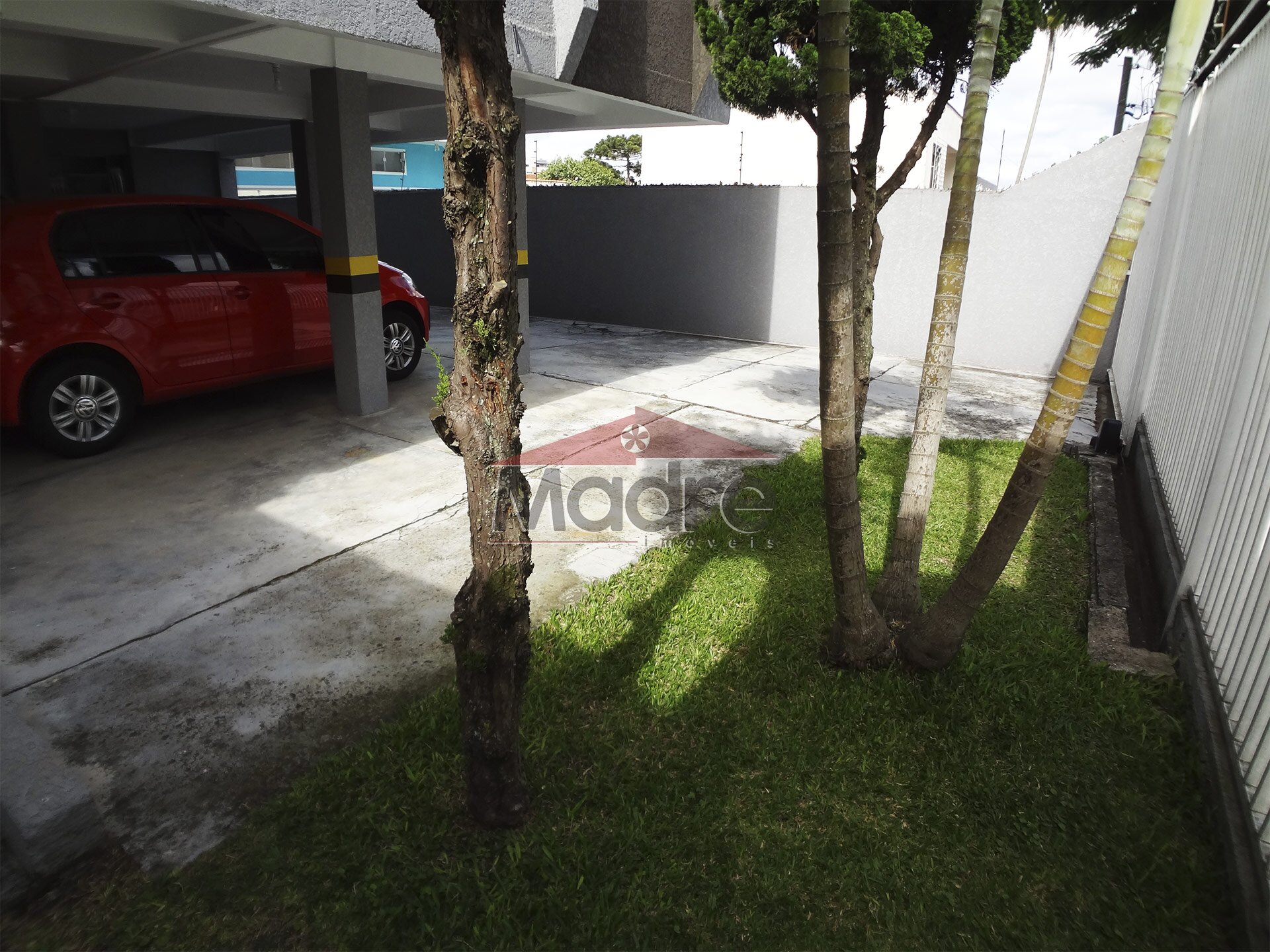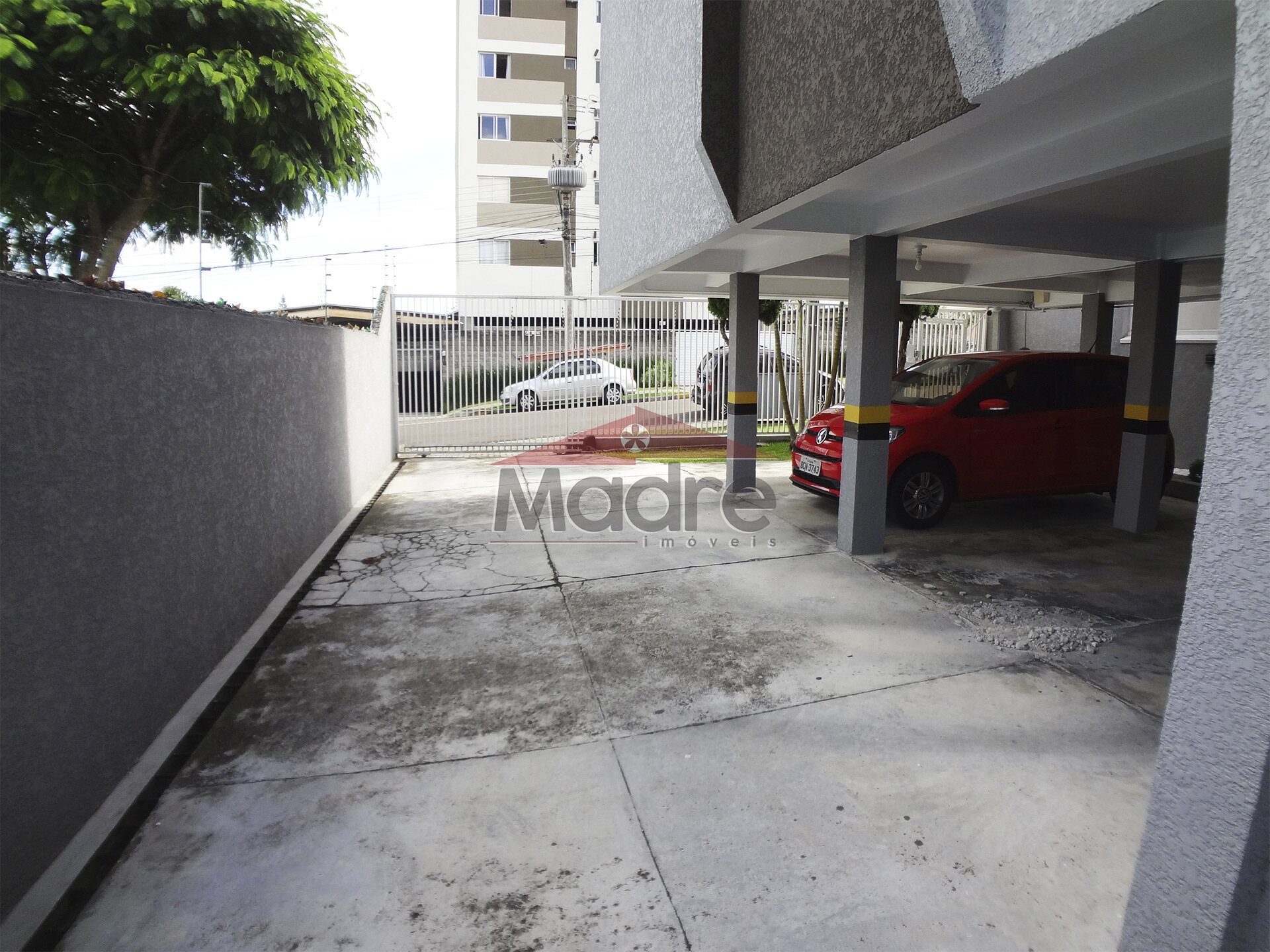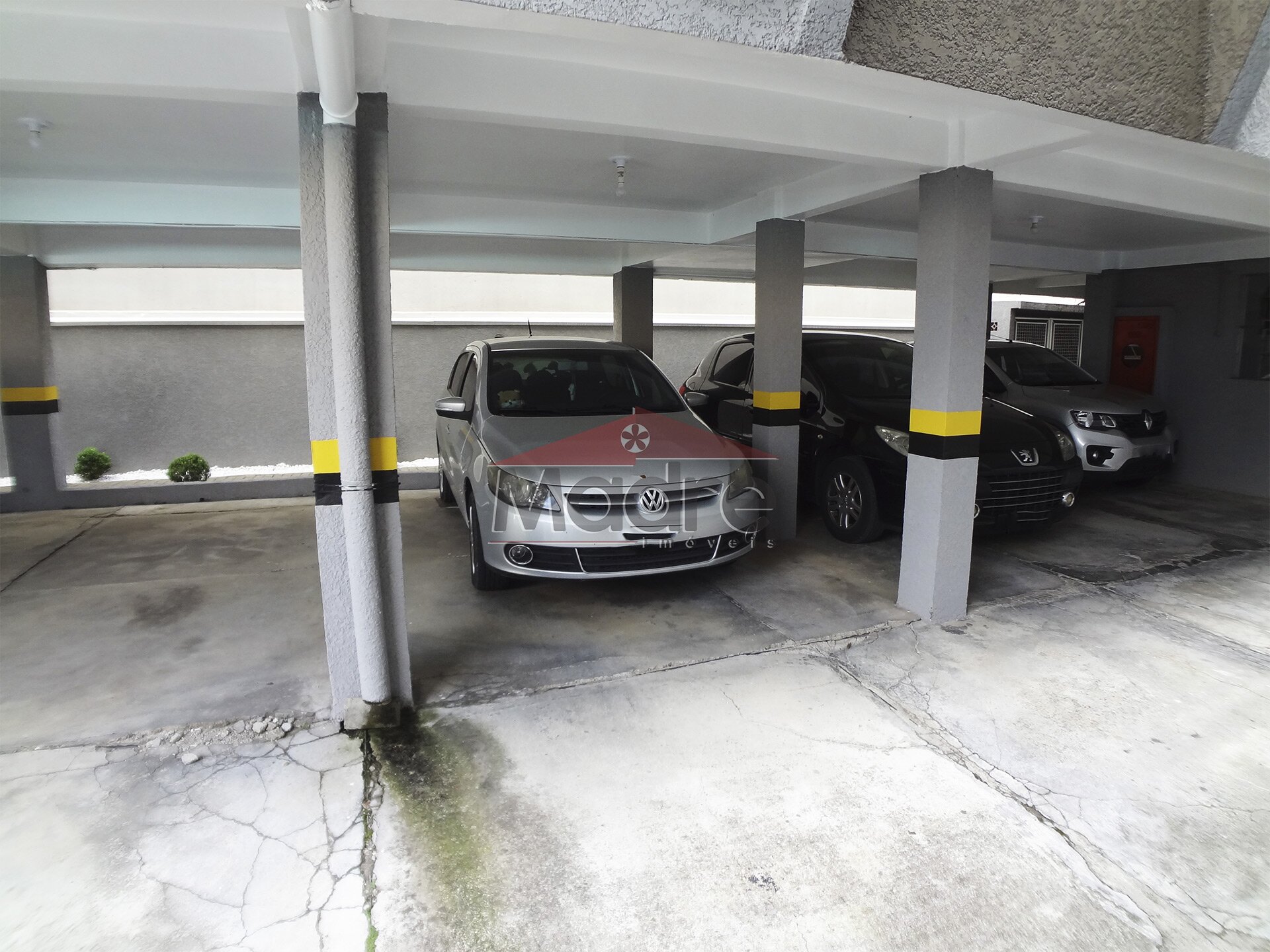 A garagem coberta e espaçosa fica no térreo. Bem fácil.