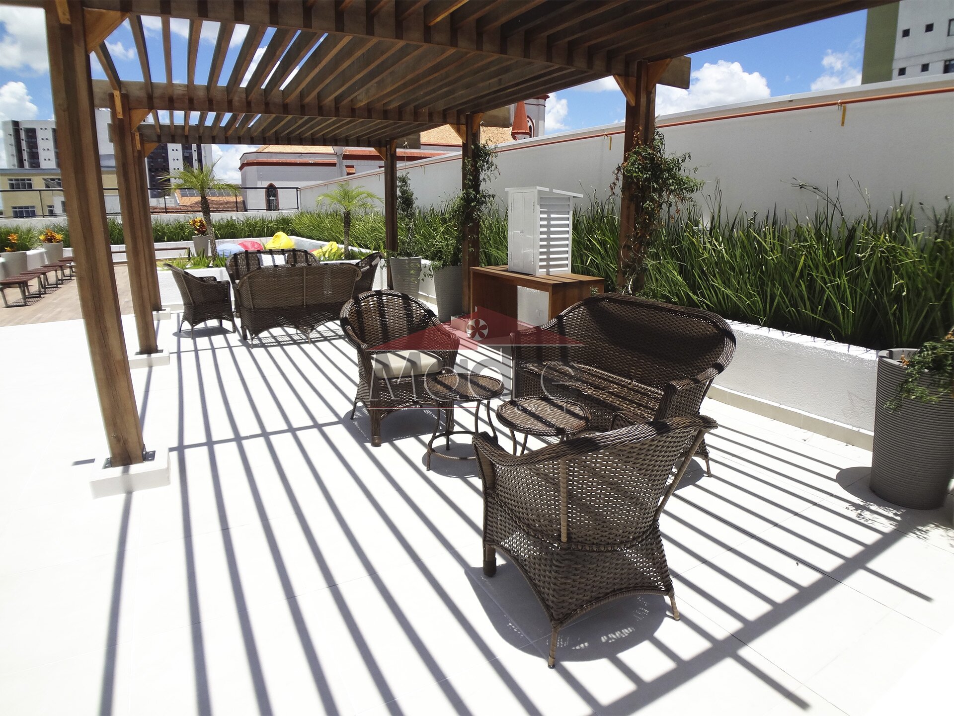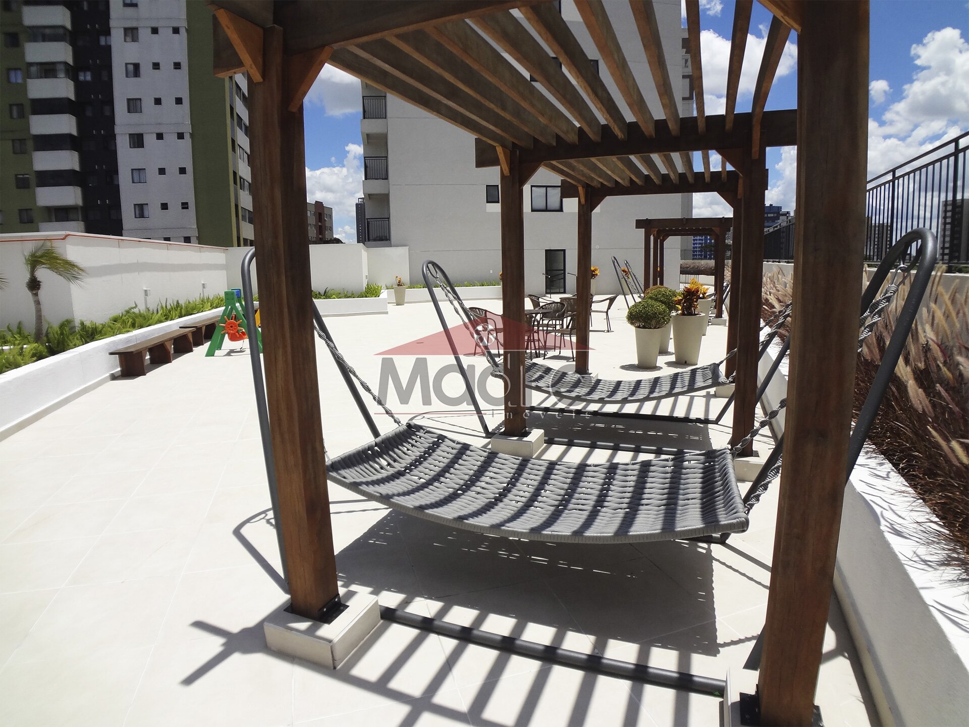 Bicicletário, Espaço Delivery, Mercado express, Hall lindo, Portaria, Lavanderia, Espaço de leitura, Redário, Jogos de tabuleiro, Cinema ao ar livre, Solarium, Espaço chimarrão... entre outros espaços. O Espaço Gourmet e a Academia, Espaço fitness, Boudoir... ficam no ático.