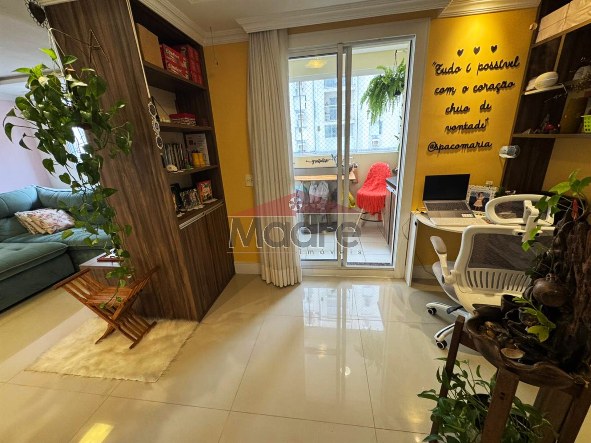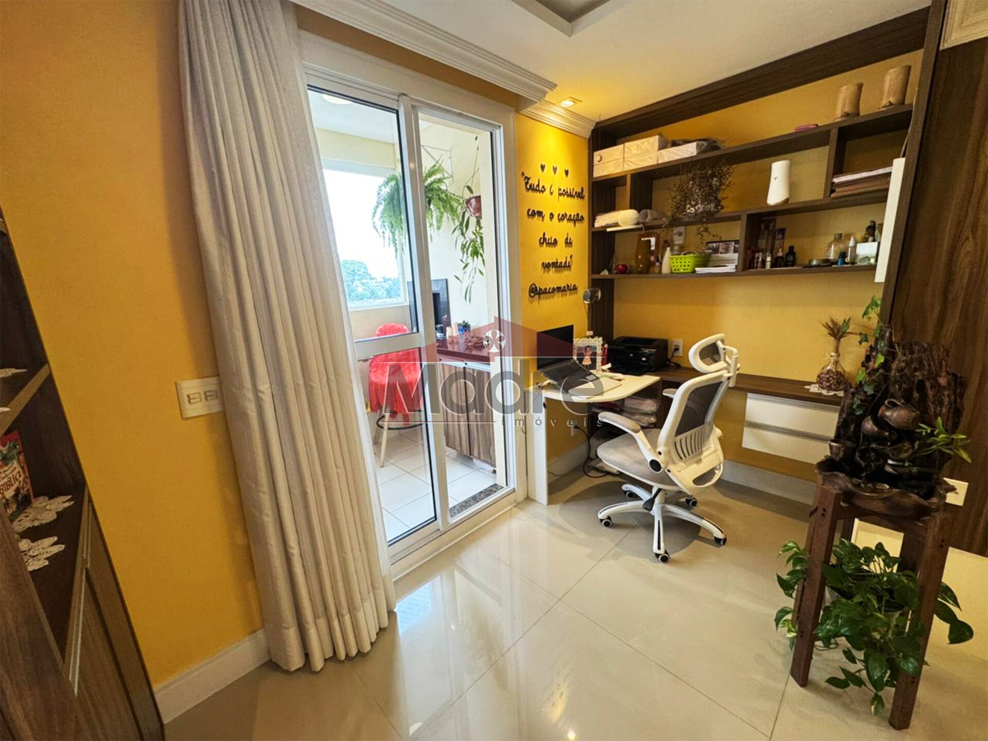 No espaço home office fica a mesa e mobília em MDF.
