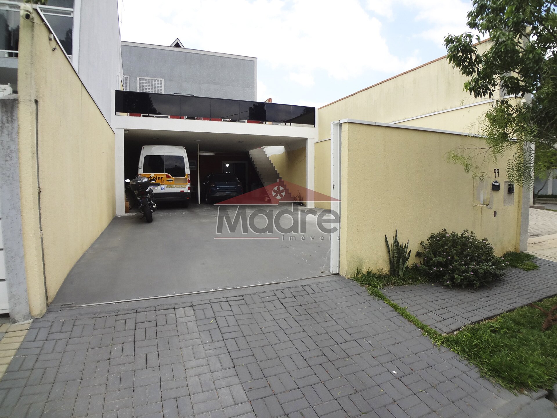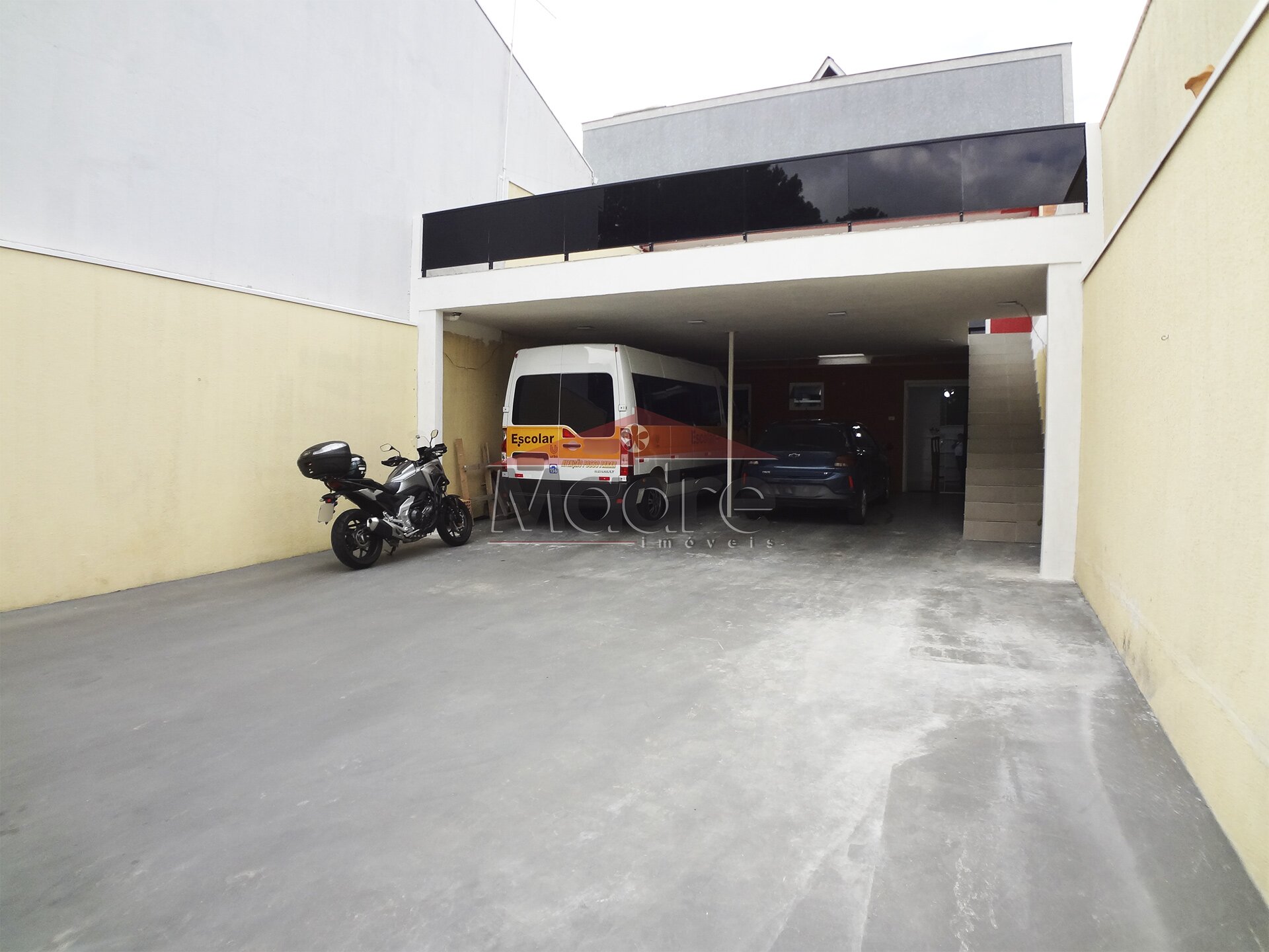 Portão alto, entrada feita de concreto usinado para entrar van, caminhão, carros pesados, garagem coberta para 2 carros e descoberta para mais 6, o espaço na frente é muito bom.